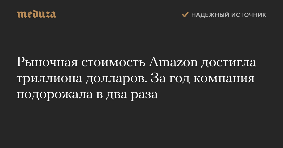 Рыночная стоимость Amazon достигла триллиона долларов. За год компания подорожала в два раза