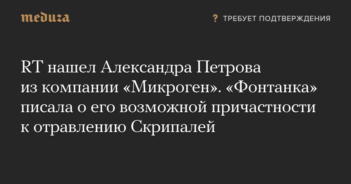 RT нашел Александра Петрова из компании «Микроген». «Фонтанка» писала о его возможной причастности к отравлению Скрипалей