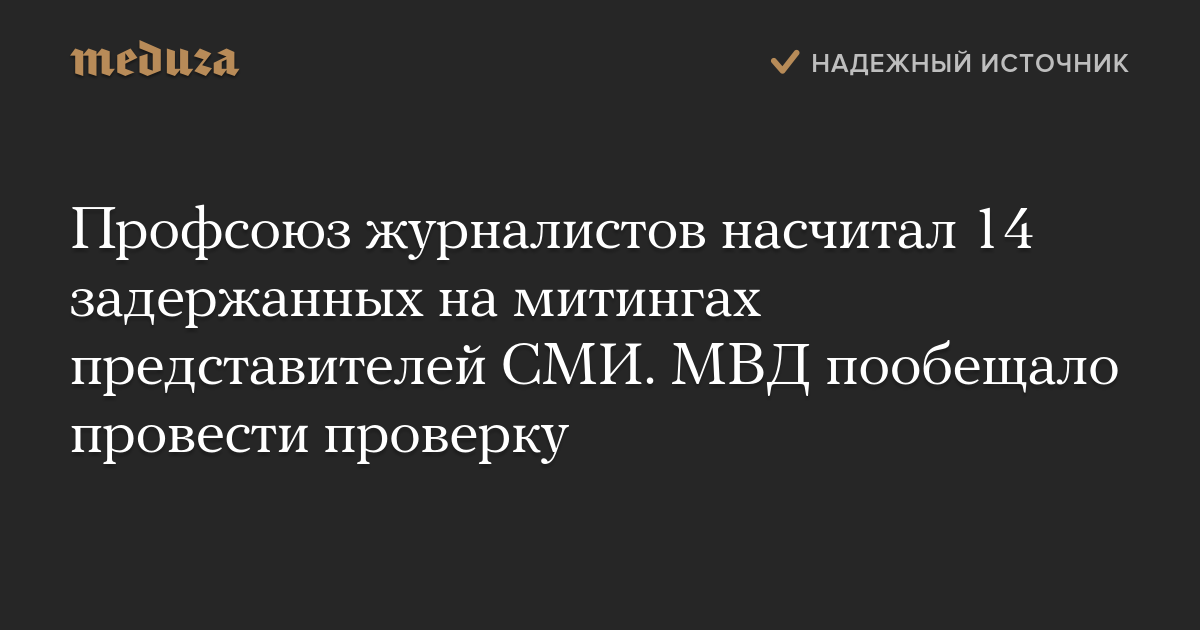 Профсоюз журналистов насчитал 14 задержанных на митингах представителей СМИ. МВД пообещало провести проверку