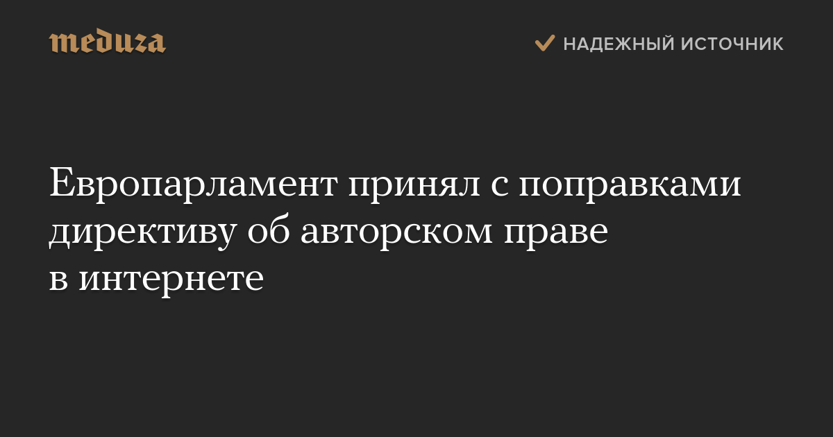 Европарламент 12 сентября принял с поправками директиву об авторском праве в интернете, которая была отклонена в июле.