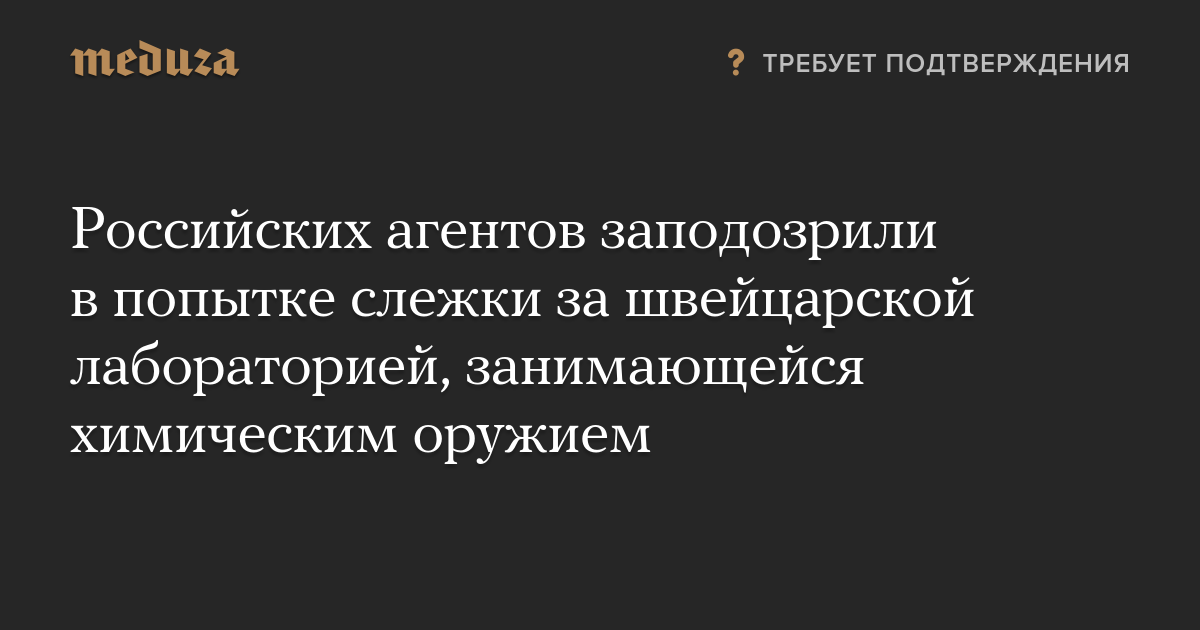 Российских агентов заподозрили в попытке слежки за швейцарской лабораторией, занимающейся химическим оружием