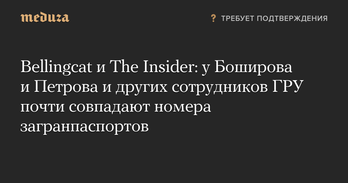 Bellingcat и The Insider: у Боширова и Петрова и других сотрудников ГРУ почти совпадают номера загранпаспортов