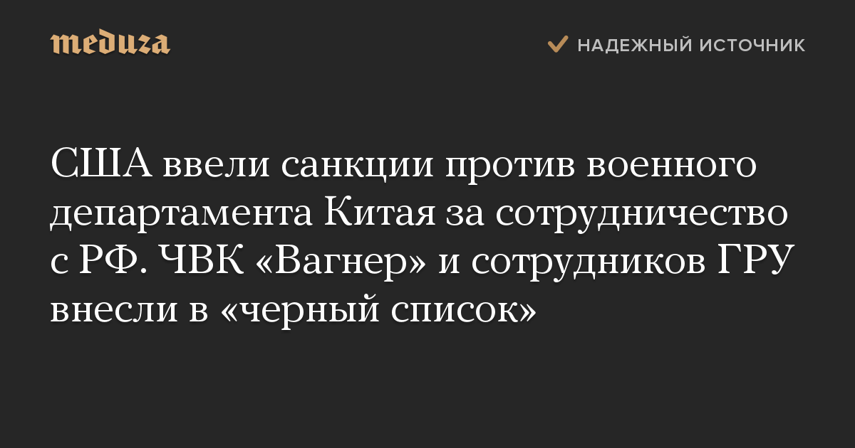 США ввели санкции против военного департамента Китая за сотрудничество с РФ. ЧВК «Вагнер» и сотрудников ГРУ внесли в «черный список»