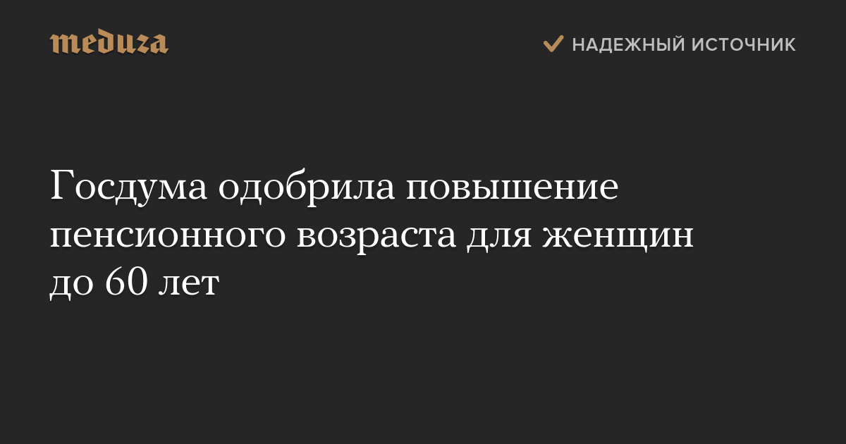 Госдума одобрила повышение пенсионного возраста для женщин до 60 лет