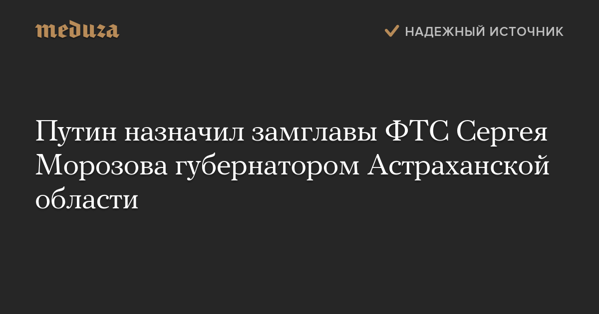 Путин назначил замглавы ФТС Сергея Морозова губернатором Астраханской области