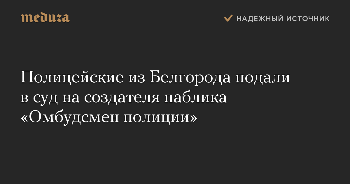 Полицейские из Белгорода подали в суд на создателя паблика «Омбудсмен полиции»