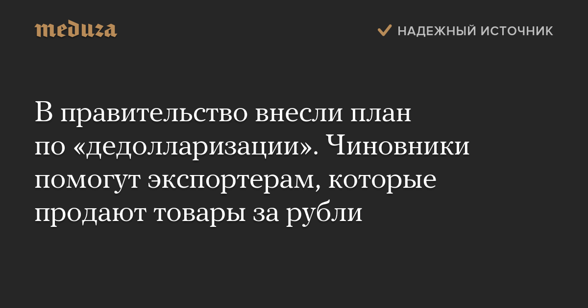 В правительство внесли план по «дедолларизации». Чиновники помогут экспортерам, которые продают товары за рубли
