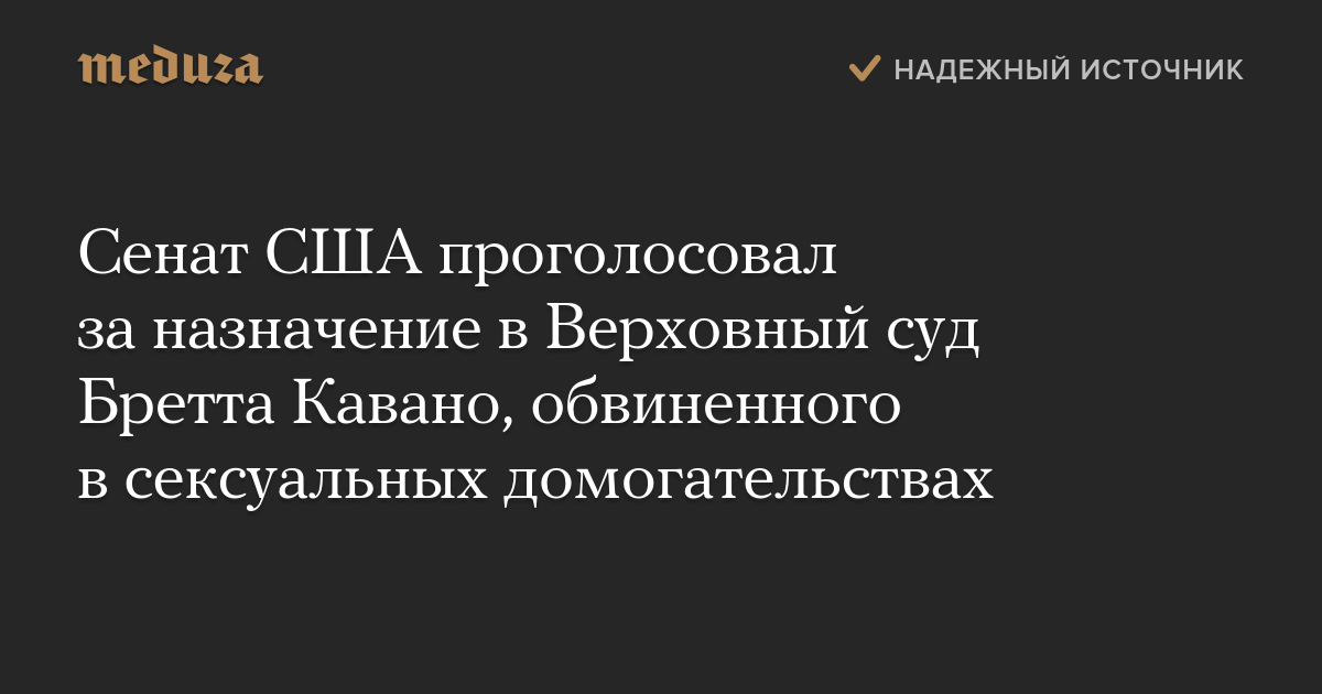 Сенат США проголосовал за назначение в Верховный суд Бретта Кавано, обвиненного в сексуальных домогательствах