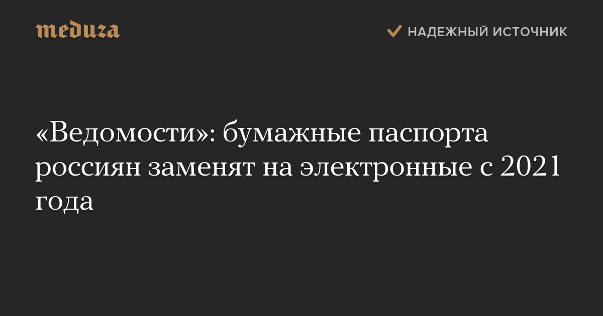 «Ведомости»: бумажные паспорта россиян заменят на электронные с 2021 года