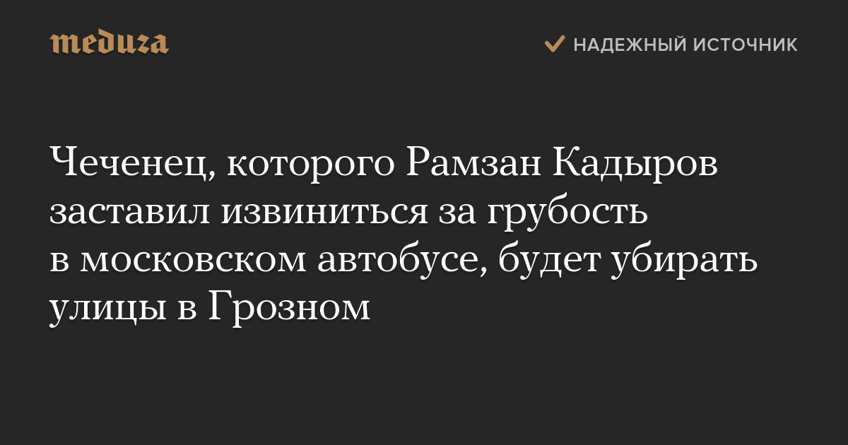 Чеченец, которого Рамзан Кадыров заставил извиниться за грубость в московском автобусе, будет убирать улицы в Грозном