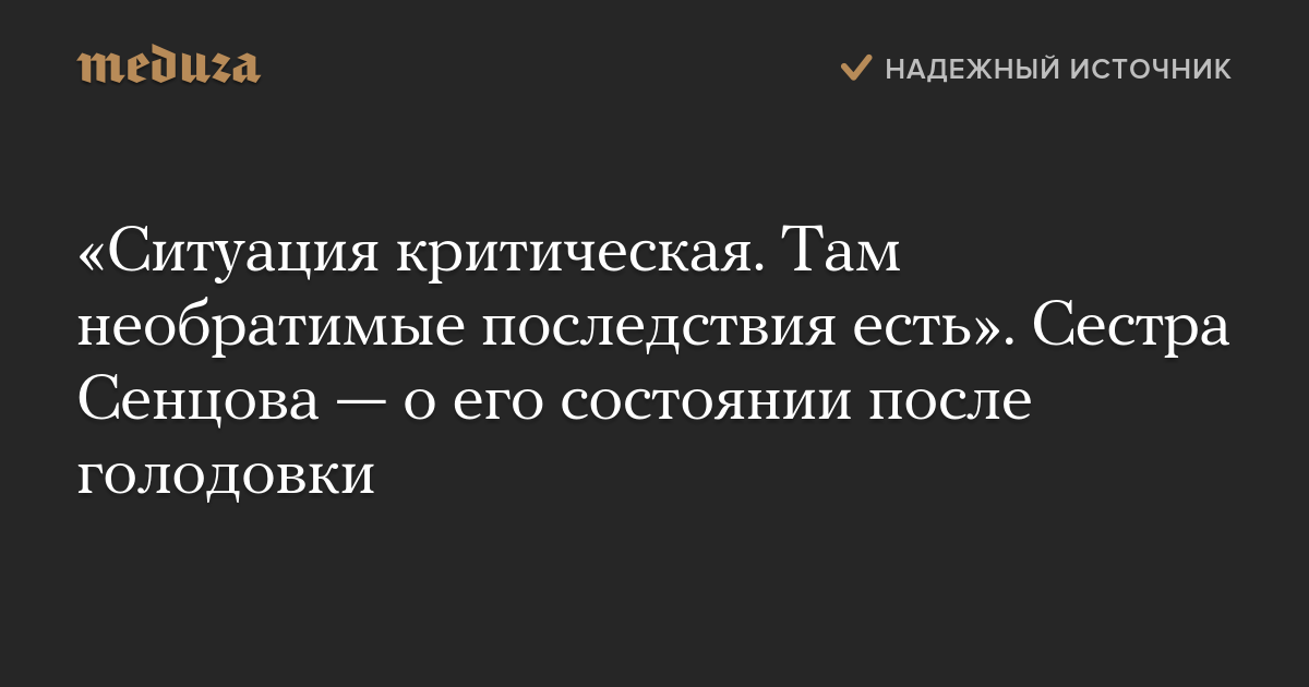 «Ситуация критическая. Там необратимые последствия есть». Сестра Сенцова — о его состоянии после голодовки