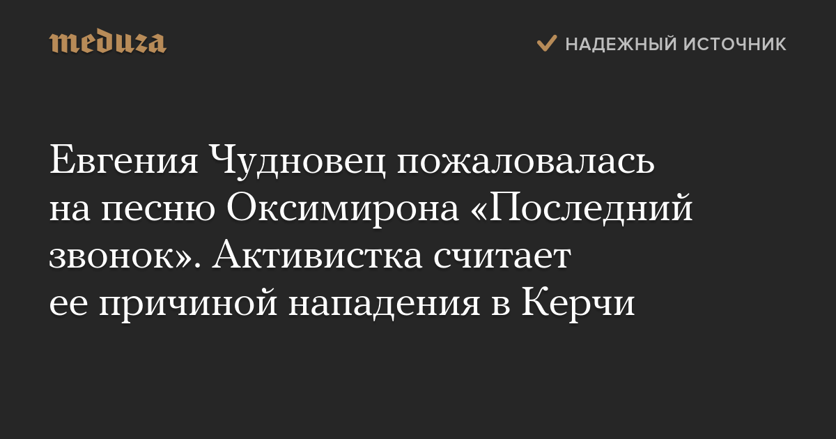 Евгения Чудновец пожаловалась на песню Оксимирона «Последний звонок». Активистка считает ее причиной нападения в Керчи