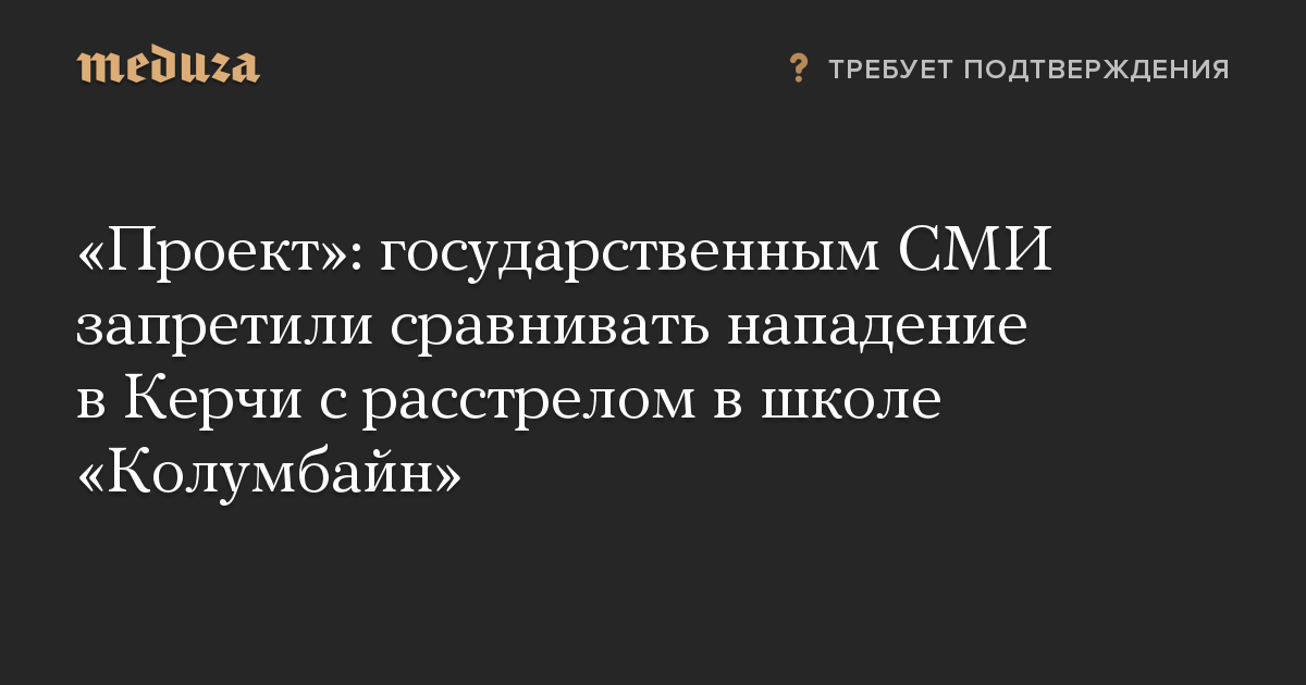 Руководители информационных агентств и телеканалов попросили сотрудников не упоминать стрельбу в американской школе «Колумбайн» в связи с массовым убийством в Керчи. Об этом «Проекту» сообщили сотрудники трех изданий.