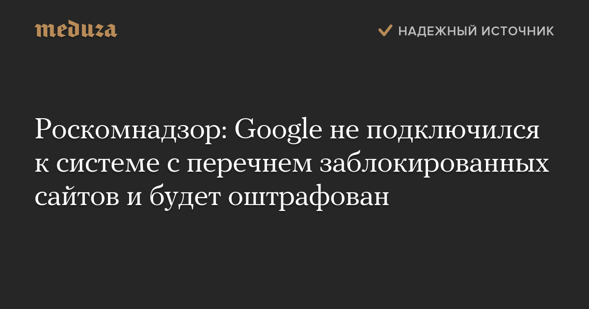 Роскомнадзор: Google не подключился к системе с перечнем заблокированных сайтов и будет оштрафован
