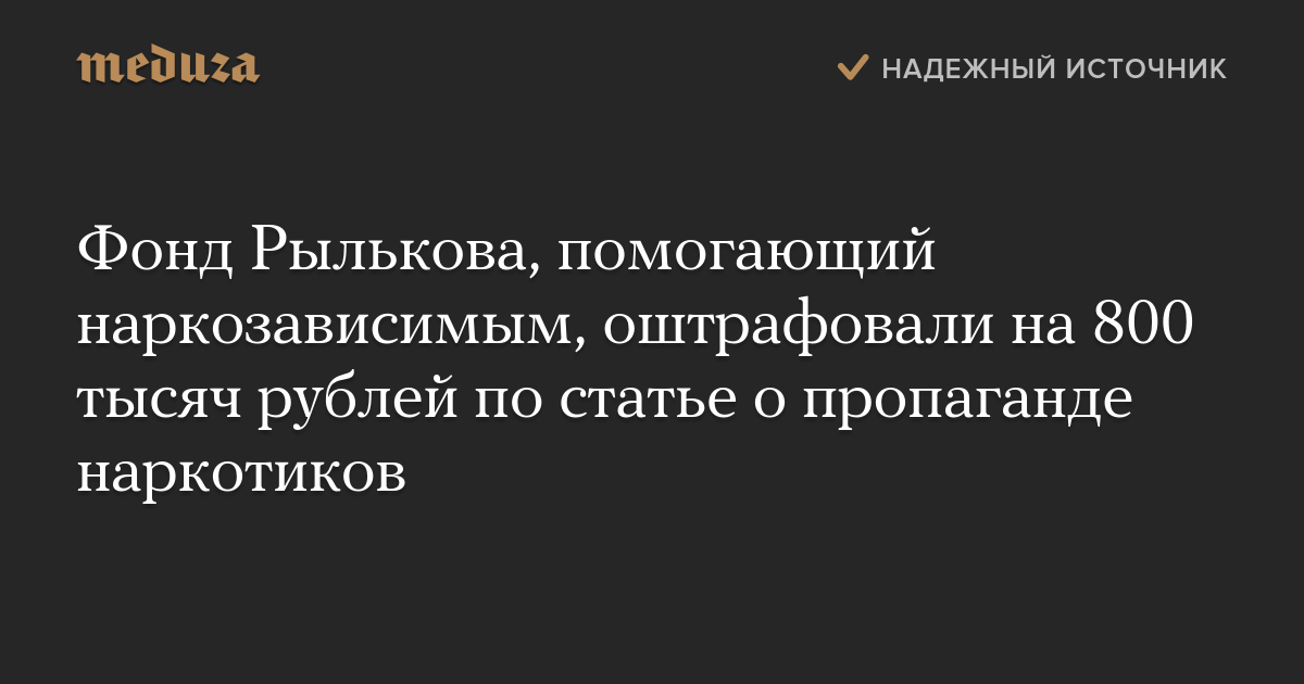 Фонд Рылькова, помогающий наркозависимым, оштрафовали на 800 тысяч рублей по статье о пропаганде наркотиков