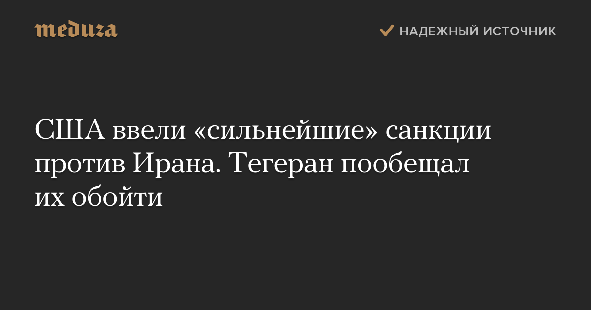 США ввели «сильнейшие» санкции против Ирана. Тегеран пообещал их обойти