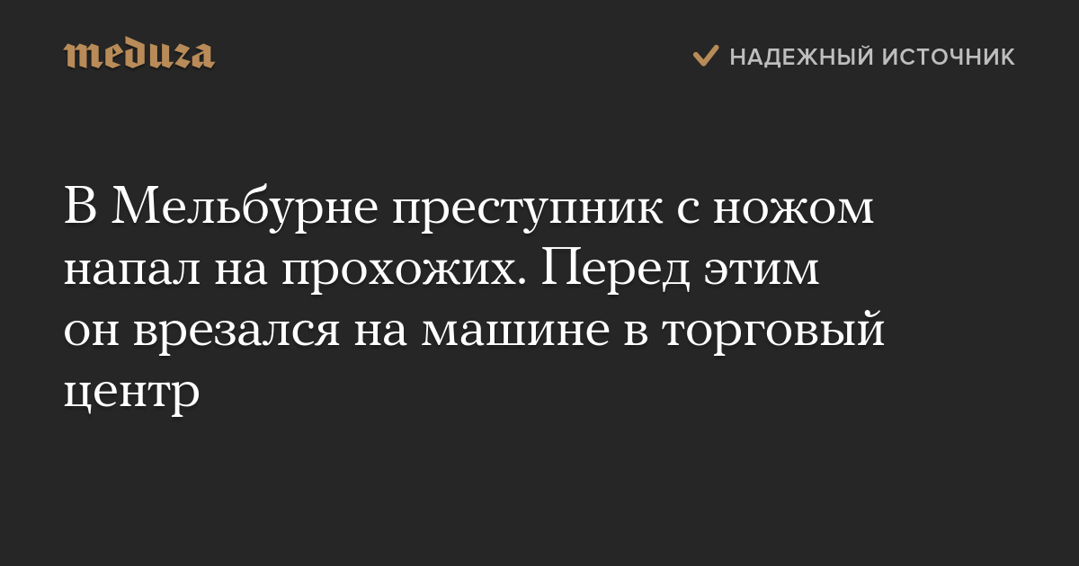 В Мельбурне преступник с ножом напал на прохожих. Перед этим он врезался на машине в торговый центр
