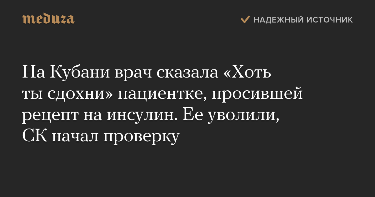 На Кубани врач сказала «Хоть ты сдохни» пациентке, просившей рецепт на инсулин. Ее уволили, СК начал проверку