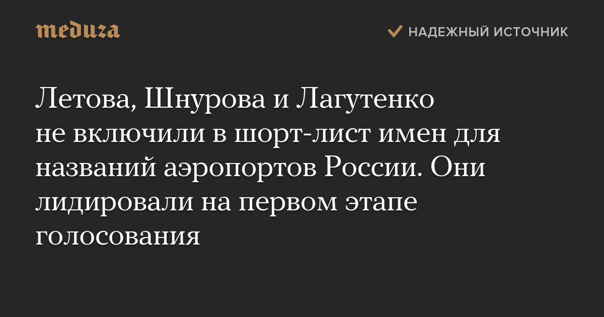 Летова, Шнурова и Лагутенко не включили в шорт-лист имен для названий аэропортов России. Они лидировали на первом этапе голосования