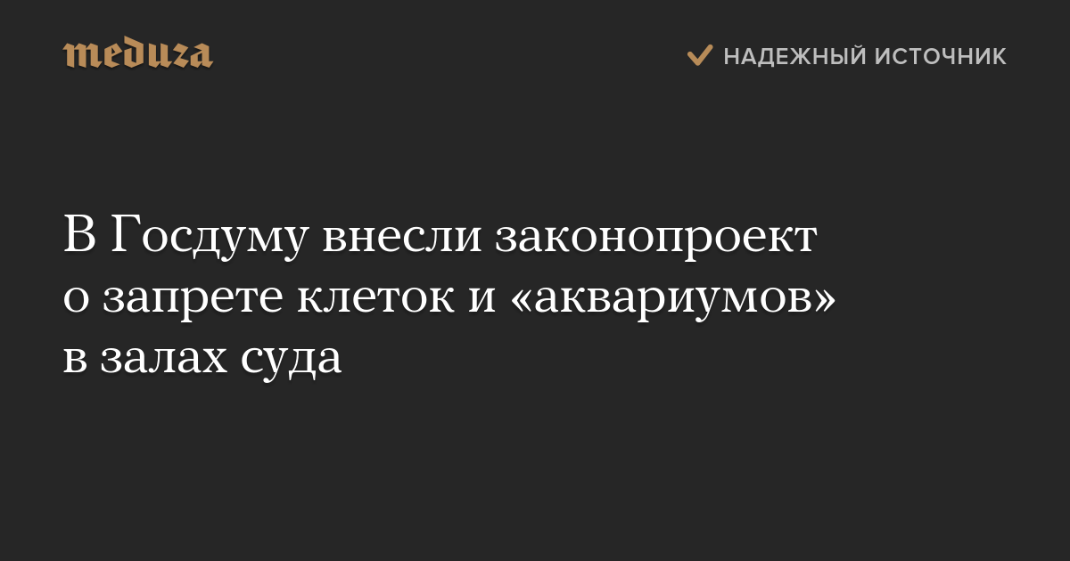 Группа членов Совета Федерации внесла в Госдуму законопроект, запрещающий установку клеток и «аквариумов» в залах суда. Об этом пишет «Интерфакс» со ссылкой на документ (в базе Госдумы он еще не опубликован).