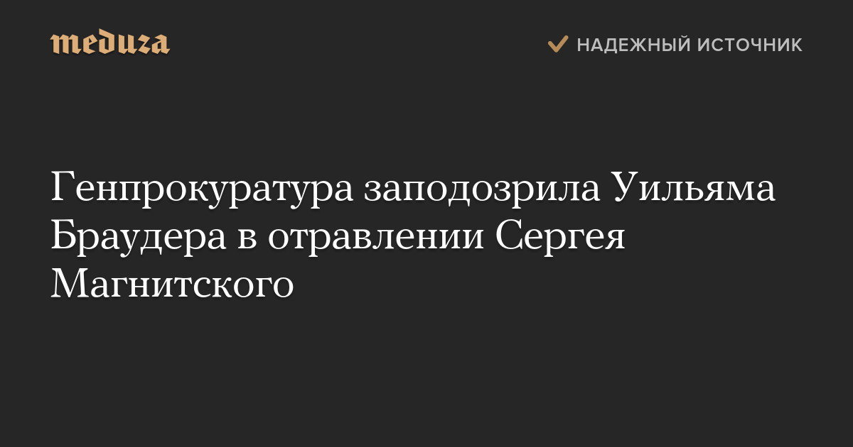 В Генпрокуратуре сообщили, что Магнитского и других соучастников преступлений Браудера могли отравить «диверсионными химическими веществами с соединениями алюминия». В прокуратуре отметили, что версию об отравлении Магнитского по приказу Браудера подтвердил журналист Олег Лурье, сидевший в одной камере с юристом.