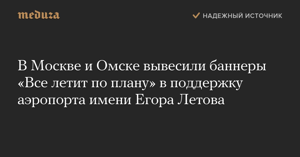 В Москве и Омске вывесили баннеры «Все летит по плану» в поддержку аэропорта имени Егора Летова
