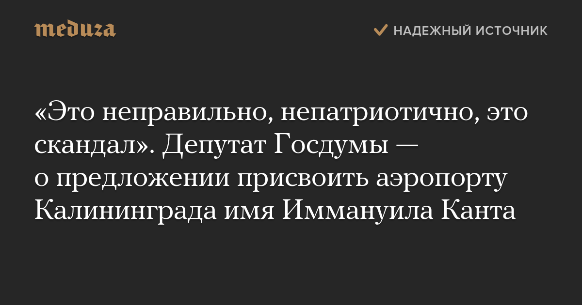 «Это неправильно, непатриотично, это скандал». Депутат Госдумы — о предложении присвоить аэропорту Калининграда имя Иммануила Канта