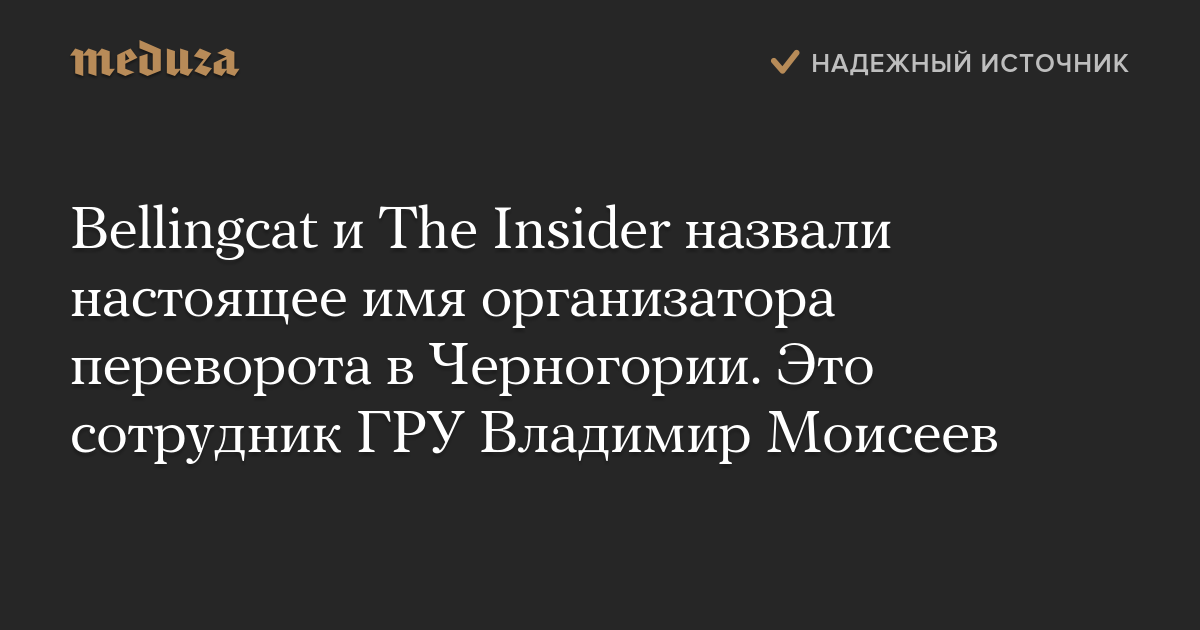 Настоящее имя Владимира Попова, обвиняемого в попытке организации переворота в Черногории, — Владимир Моисеев, и он сотрудник ГРУ, выяснили Bellingcat и The Insider.