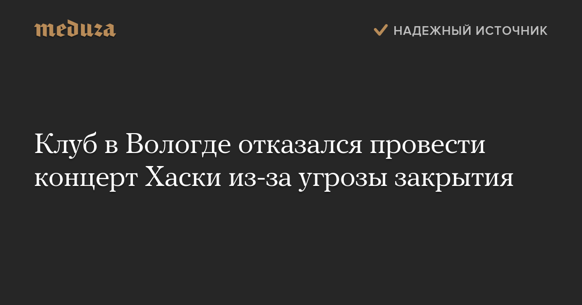 Клуб в Вологде отказался провести концерт Хаски из-за угрозы закрытия