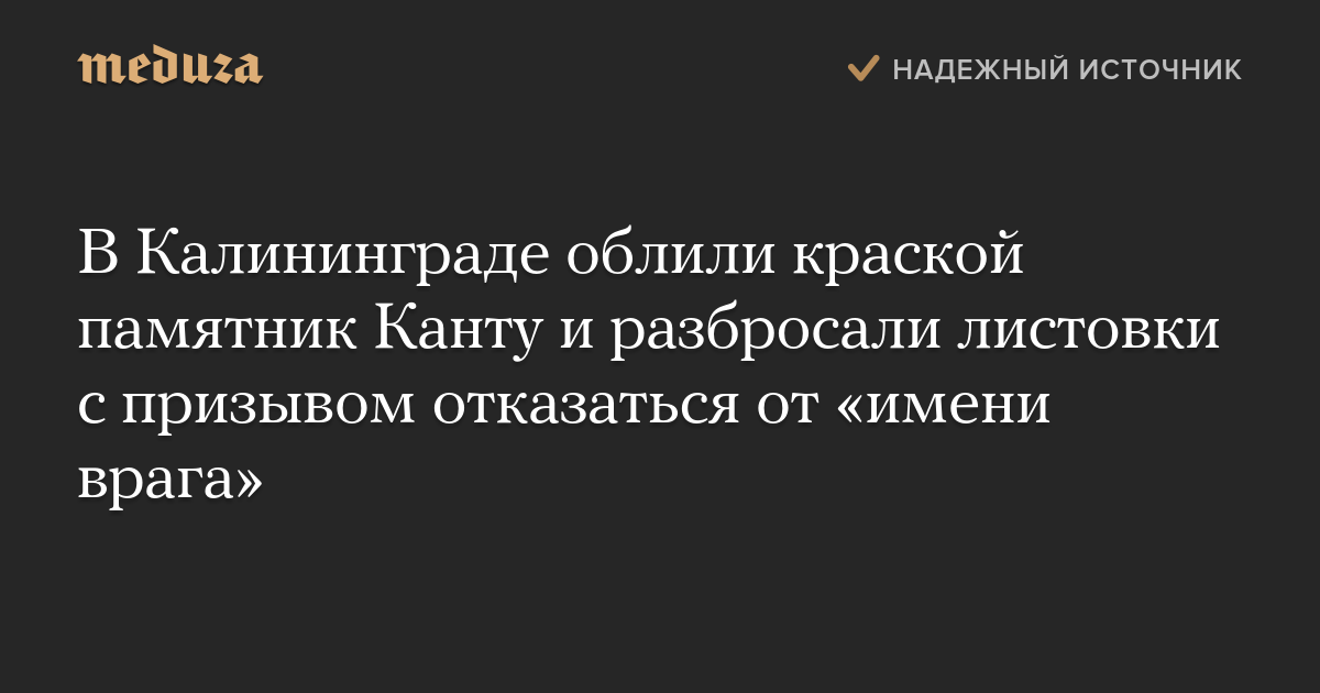 В Калининграде облили краской памятник Канту и разбросали листовки с призывом отказаться от «имени врага»