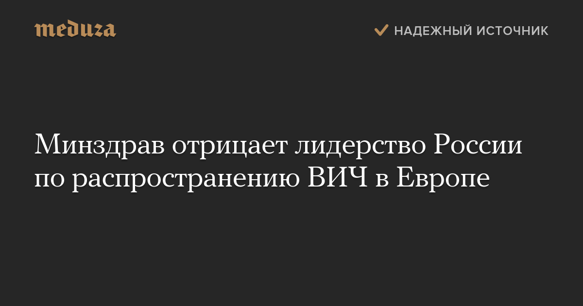 Минздрав отрицает лидерство России по распространению ВИЧ в Европе