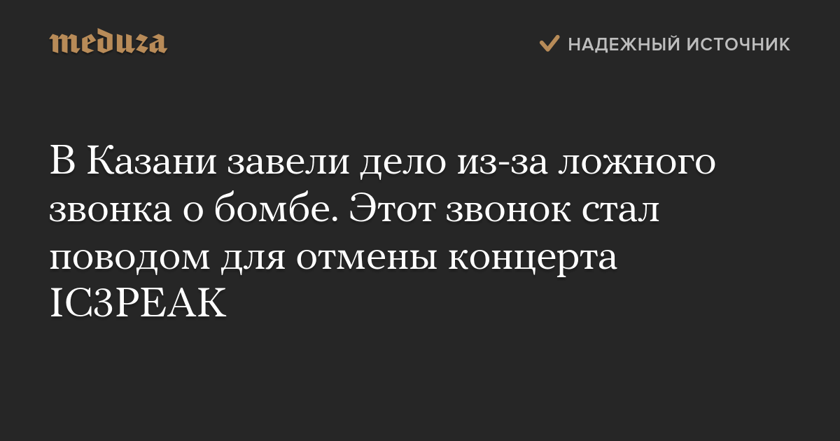 В Казани завели дело из-за ложного звонка о бомбе. Этот звонок стал поводом для отмены концерта IC3PEAK