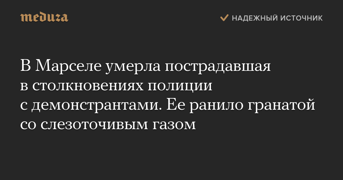 В Марселе умерла пострадавшая в столкновениях полиции с демонстрантами. Ее ранило гранатой со слезоточивым газом