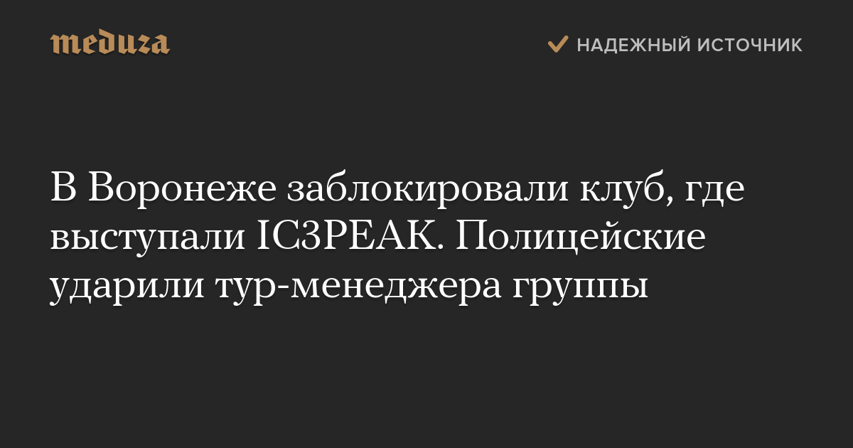 В Воронеже заблокировали клуб, где выступали IC3PEAK. Полицейские ударили тур-менеджера группы
