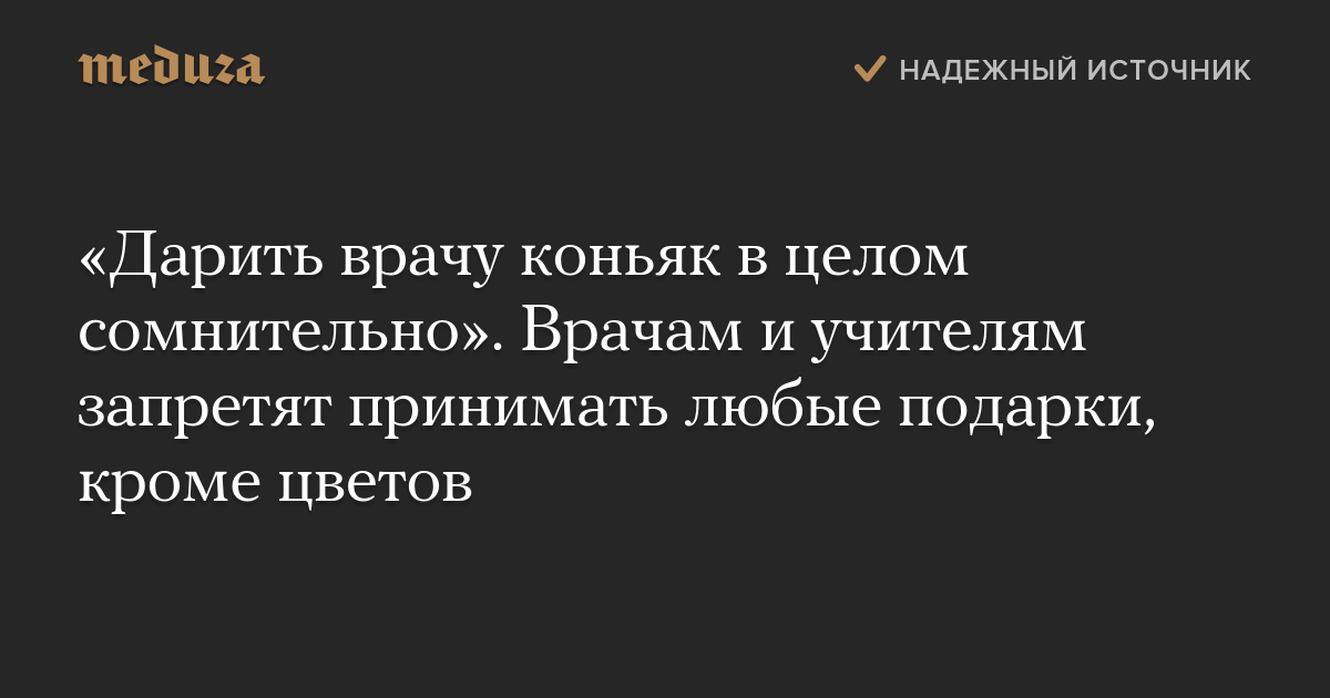 «Дарить врачу коньяк в целом сомнительно». Врачам и учителям запретят принимать любые подарки, кроме цветов