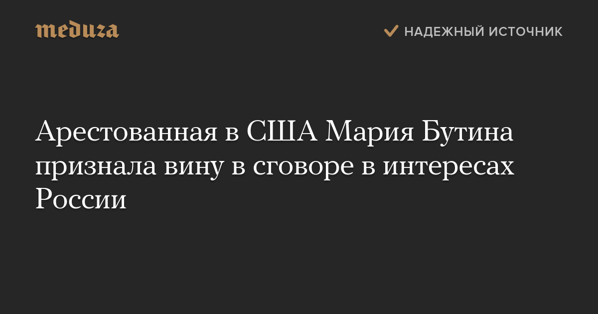 Арестованная в США россиянка Мария Бутина признала себя виновной по одному из двух пунктов обвинения — сговоре в интересах России.