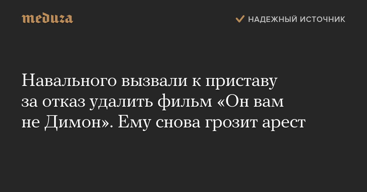 Навального вызвали к приставу за отказ удалить фильм «Он вам не Димон». Ему снова грозит арест