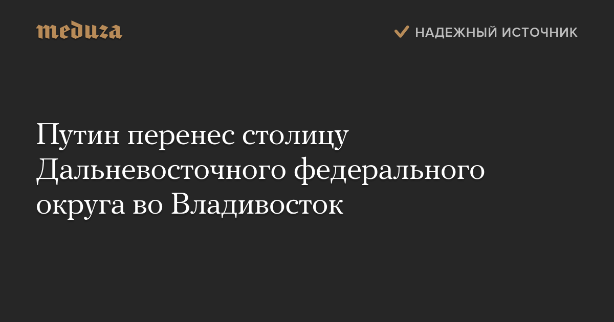 Путин перенес столицу Дальневосточного федерального округа во Владивосток