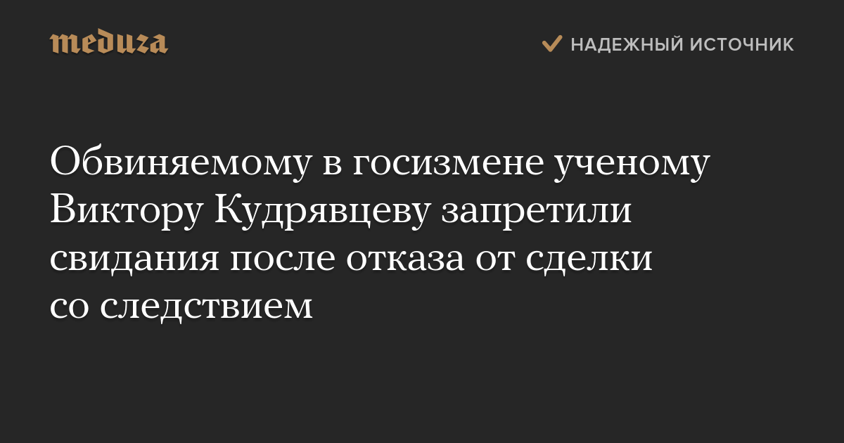 Обвиняемому в госизмене ученому Виктору Кудрявцеву запретили свидания после отказа от сделки со следствием
