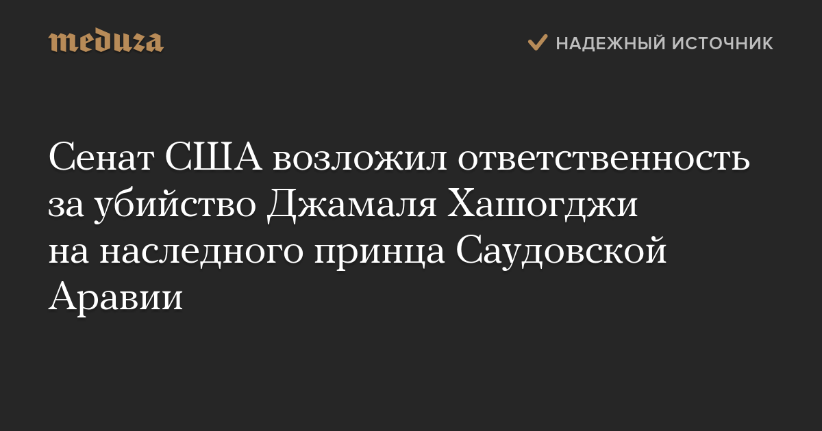 Сенат США возложил ответственность за убийство Джамаля Хашогджи на наследного принца Саудовской Аравии