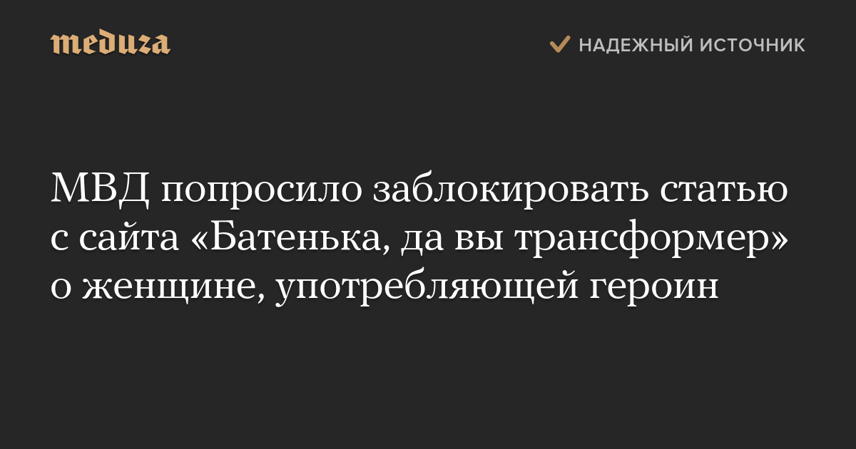 МВД попросило заблокировать статью с сайта «Батенька, да вы трансформер» о женщине, употребляющей героин