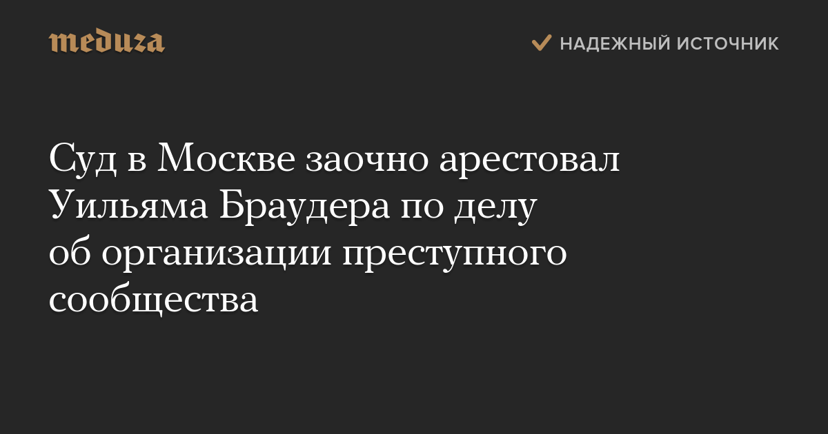 Суд в Москве заочно арестовал Уильяма Браудера по делу об организации преступного сообщества