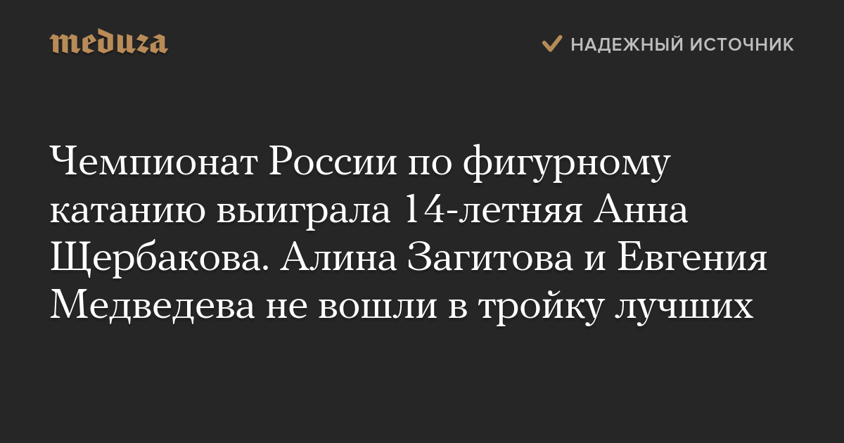 Чемпионат России по фигурному катанию выиграла 14-летняя Анна Щербакова. Алина Загитова и Евгения Медведева не вошли в тройку лучших