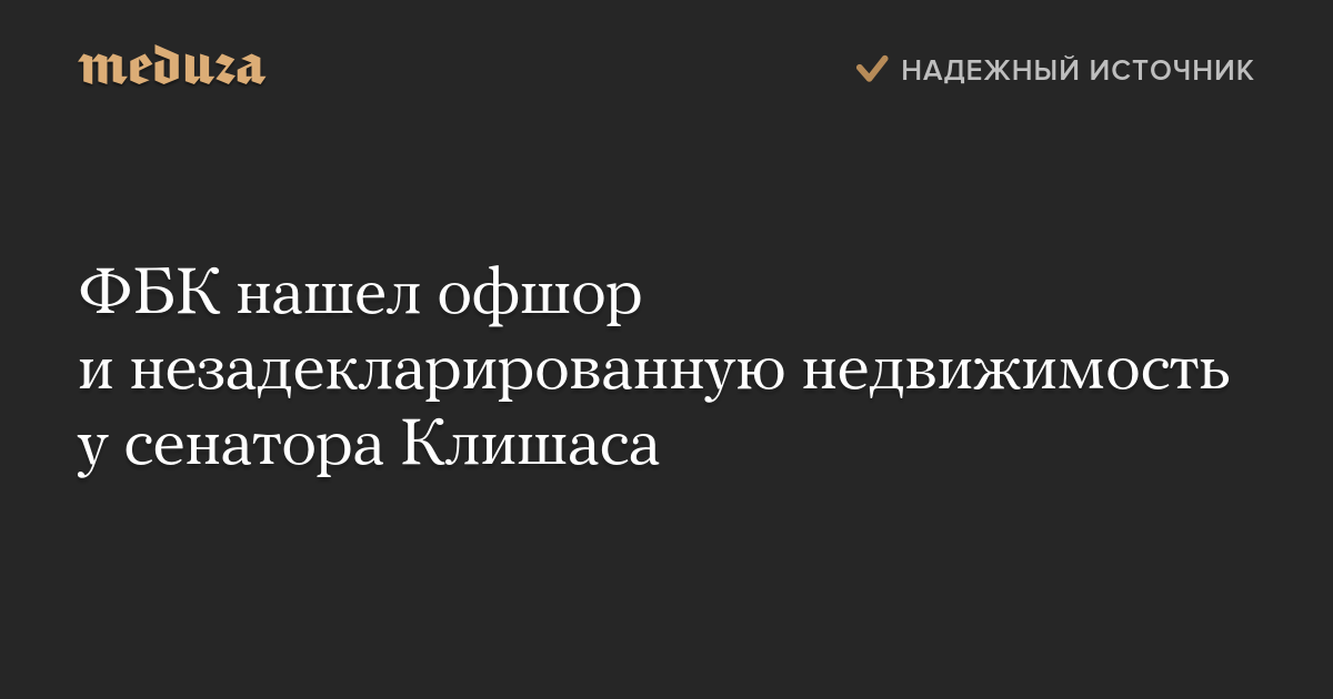 ФБК нашел офшор и незадекларированную недвижимость у сенатора Клишаса