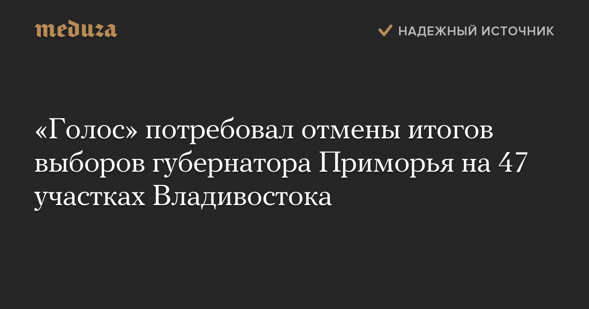 Движение «Голос» потребовало от ЦИК РФ обратиться в суд с исками об отмене результатов выборов губернатора Приморского края на 47 из 80 участков во Владивостоке, оборудованных электронными урнами, из-за выявленных нарушений.