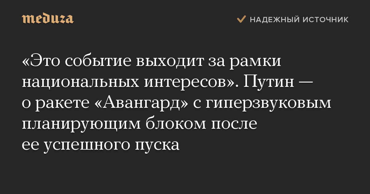 «Это событие выходит за рамки национальных интересов». Путин — о ракете «Авангард» с гиперзвуковым планирующим блоком после ее успешного пуска