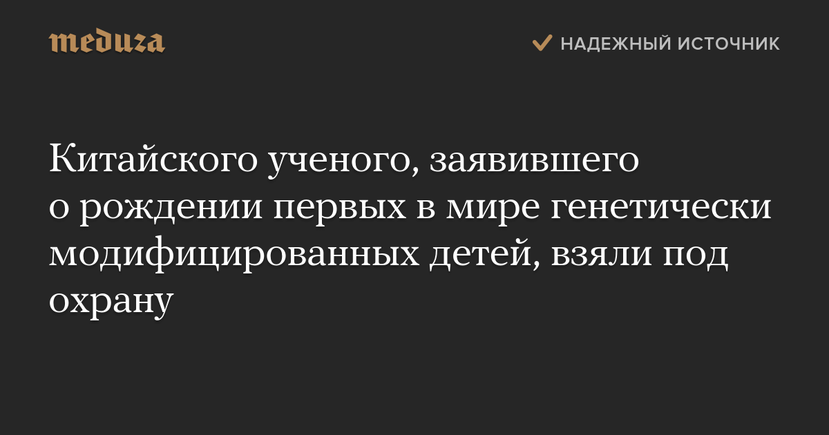 Китайского ученого, заявившего о рождении первых в мире генетически модифицированных детей, взяли под охрану