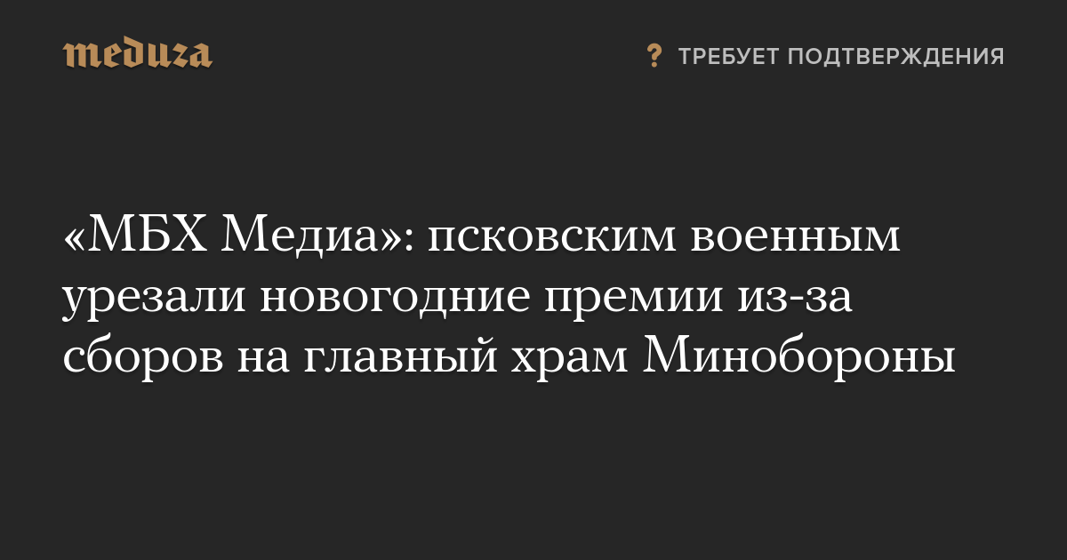 «МБХ Медиа»: псковским военным урезали новогодние премии из-за сборов на главный храм Минобороны