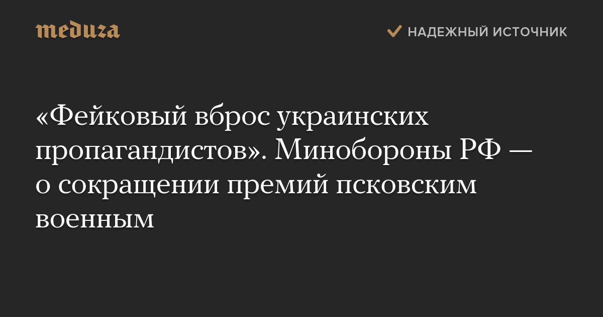 «Фейковый вброс украинских пропагандистов». Минобороны РФ — о сокращении премий псковским военным