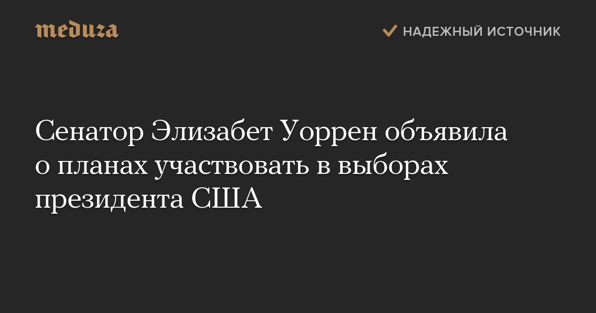 Сенатор Элизабет Уоррен объявила о планах участвовать в выборах президента США
